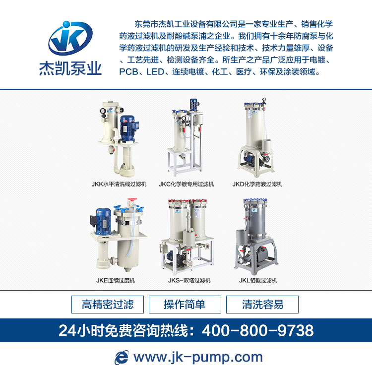 极悦娱乐工业设备是一家专业生产,销售化学药液过滤机及耐酸碱泵浦等产品厂家.公司拥有十余年防腐泵与化学药液过滤机的研发及生产经验和技术,技术力量雄厚,设备,工艺先进,检测设备齐全.所生产之产品广泛应用于电镀,PCB,LED,连续电镀,化工,医疗,环保及涂装等领域.