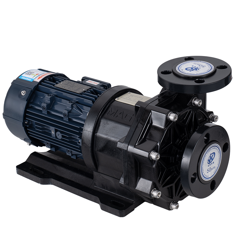 化工磁力泵的问题需要怎么应对?即外磁钢总成转动时,经过磁场的作用磁力驱动线穿过隔离套驱动内转子,即内磁钢总成和叶轮同步转动,过流部件全部使用氟合金生产,可传输任何浓强度的酸、碱、氧化剂等腐蚀性液体。
