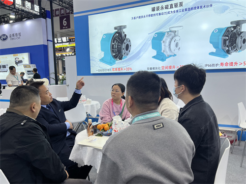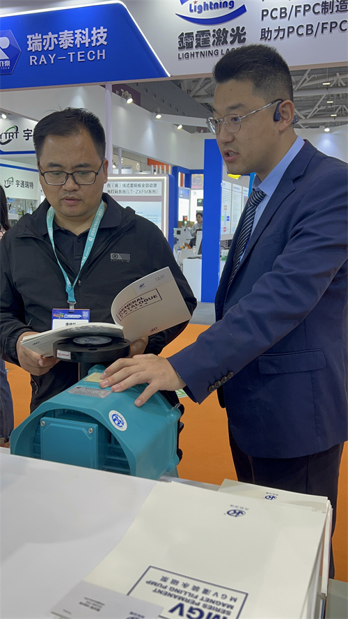 开展三日,极悦流体展位始终人气汇聚。我们重点展示了新品MGV罐装永磁直驱泵,这款专为泛半导体、储能、光伏等行业打造的化工泵,吸引了大量电路板生产厂商、设备集成商及技术决策者的驻足咨询。